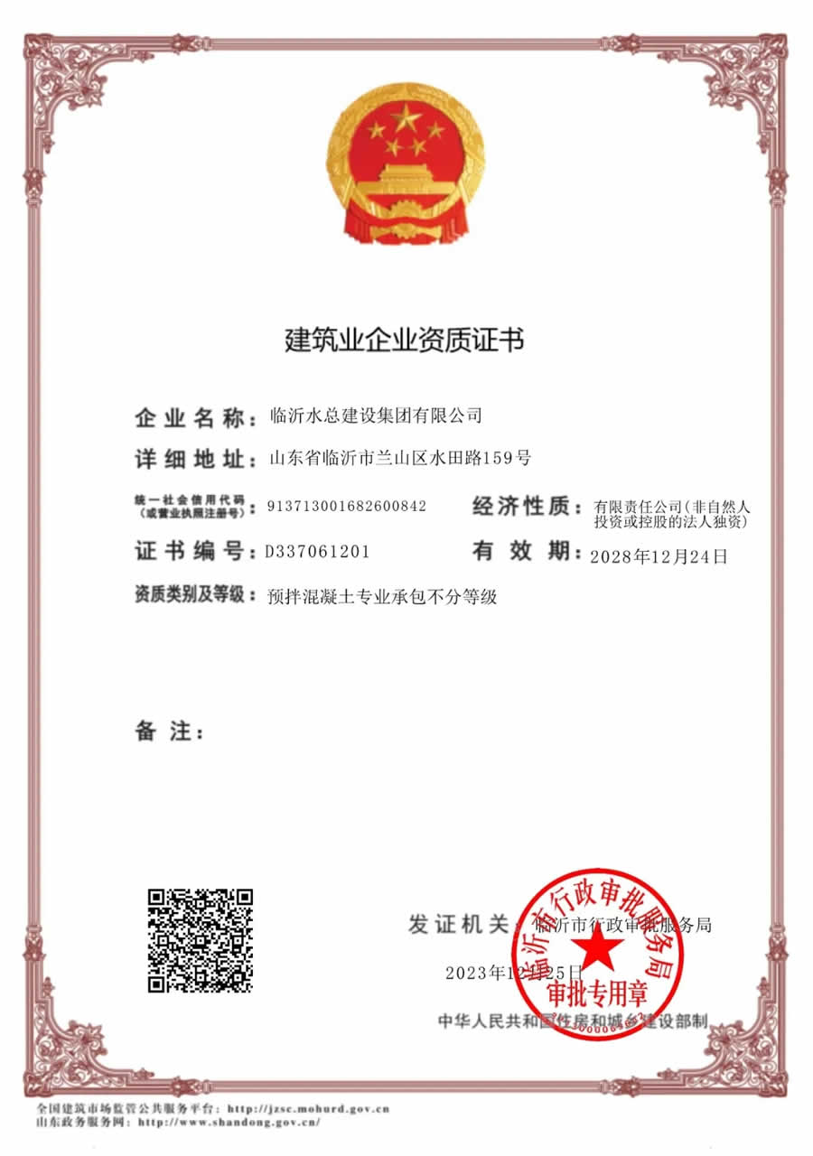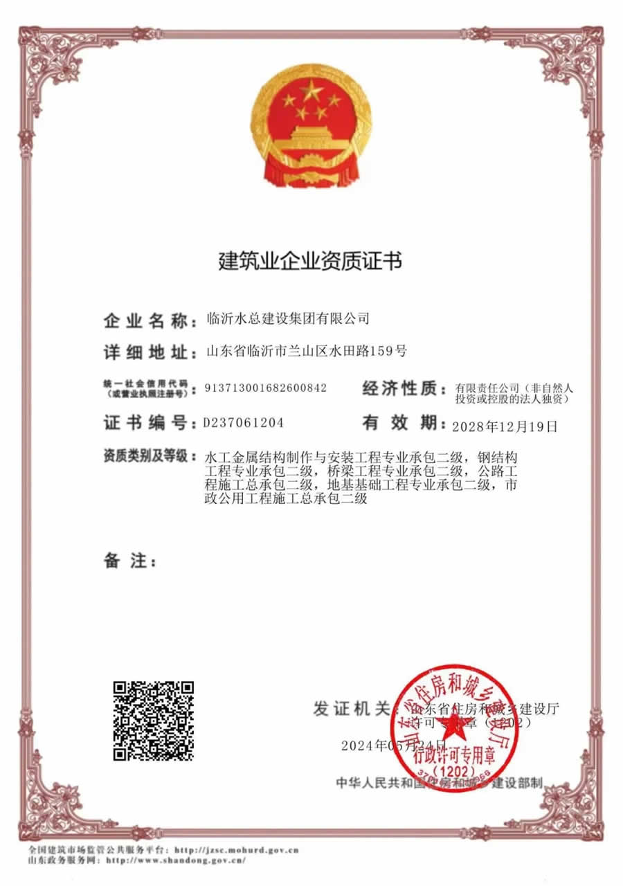 臨沂水總建設(shè)集團(tuán)有限公司(原山東臨沂水利工程總公司,于2023年9月完成改制更名)成立于1959年,隸屬臨沂市水利集團(tuán)有限公司,是涵蓋水利工程施工、房屋建筑工程施工、公路橋梁工程施工、市政公用工程施工、水利工程監(jiān)理于一體的綜合性企業(yè)。